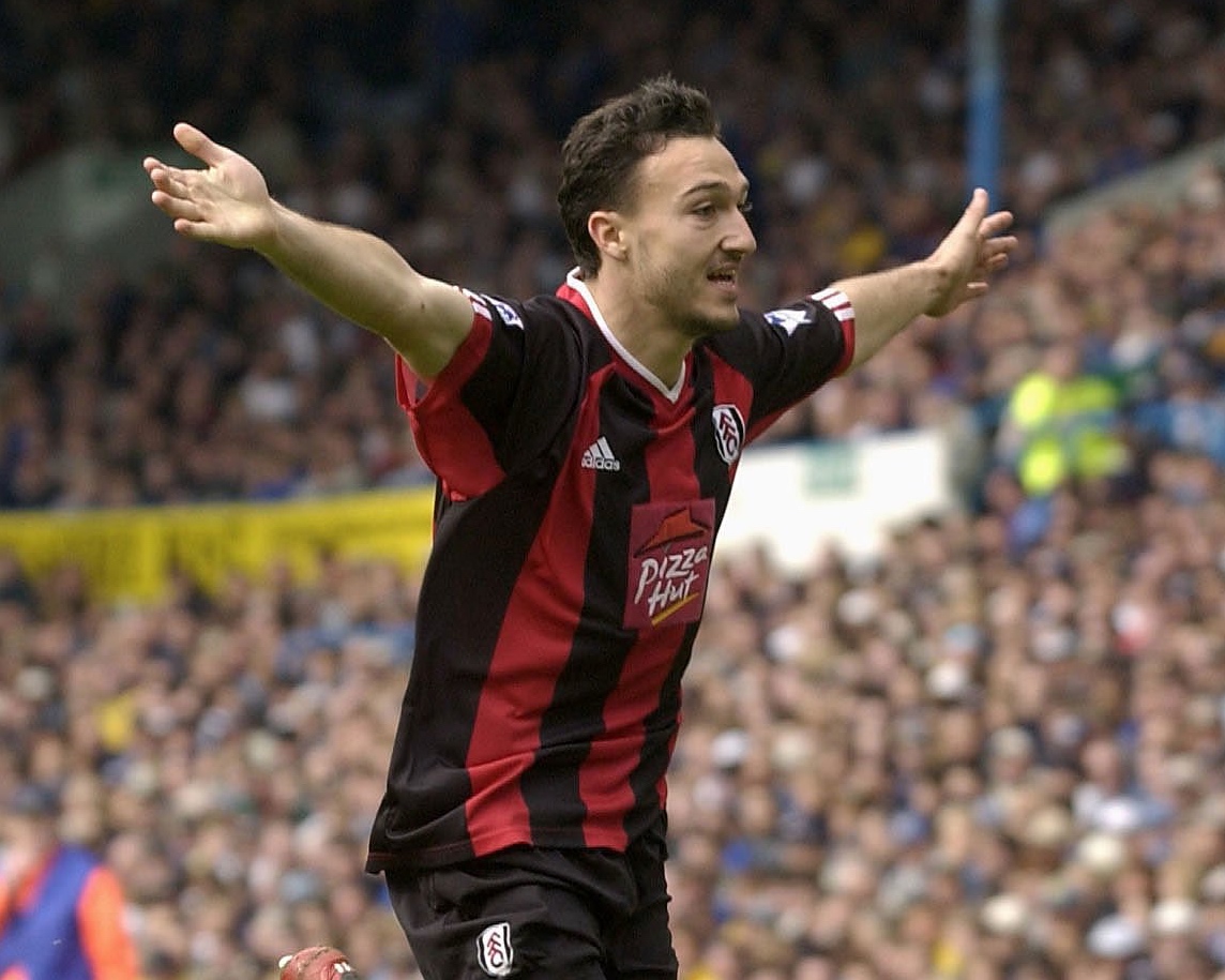20 Apr 2002: Steed Malbranque of Fulham celebrates after scoring during the Leeds United v Fulham Barclaycard Premiership match played at Elland Road, Leeds. DIGITAL IMAGE Mandatory Credit: Shaun Botterill/Getty Images